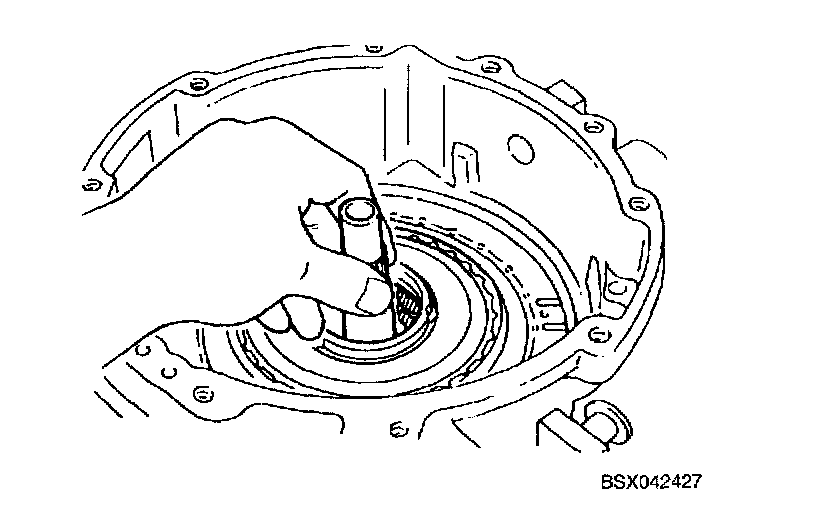 48. Install torque converter in converter housing while rotating it to align splines.