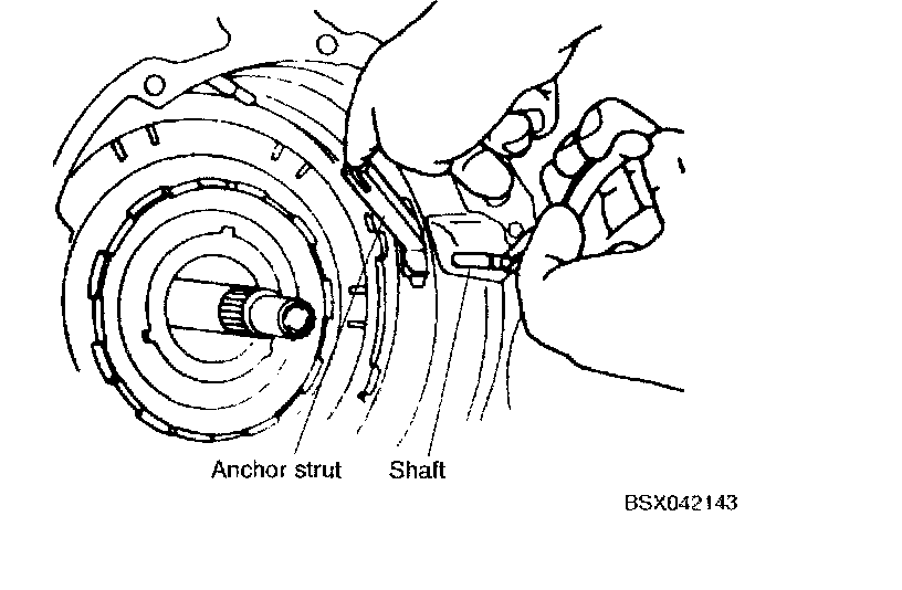 Notice: Interlock 2 brake band and anchor strut as shown.