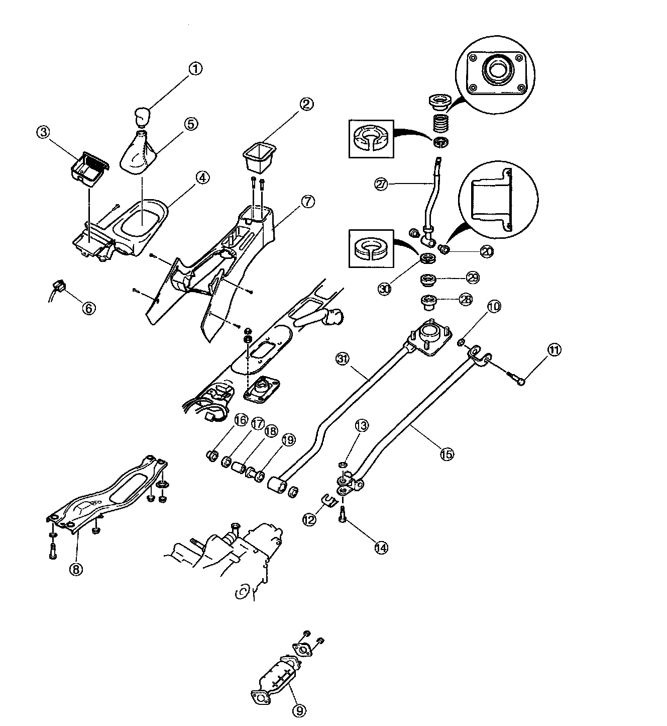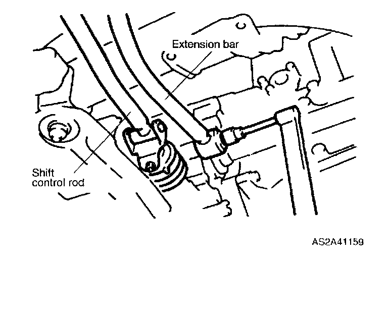 1. Install the extension bar to the floor, and then onto the transaxle. Tighten the extension bar nut at the transaxle.