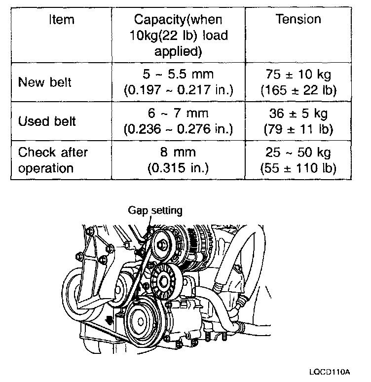 AIR CONDITIONER BELT SETTING1. Compressor should be operated once or twice a month even in seasons air conditioning is not required, and compressor belt tension shall be adjusted from time to time.