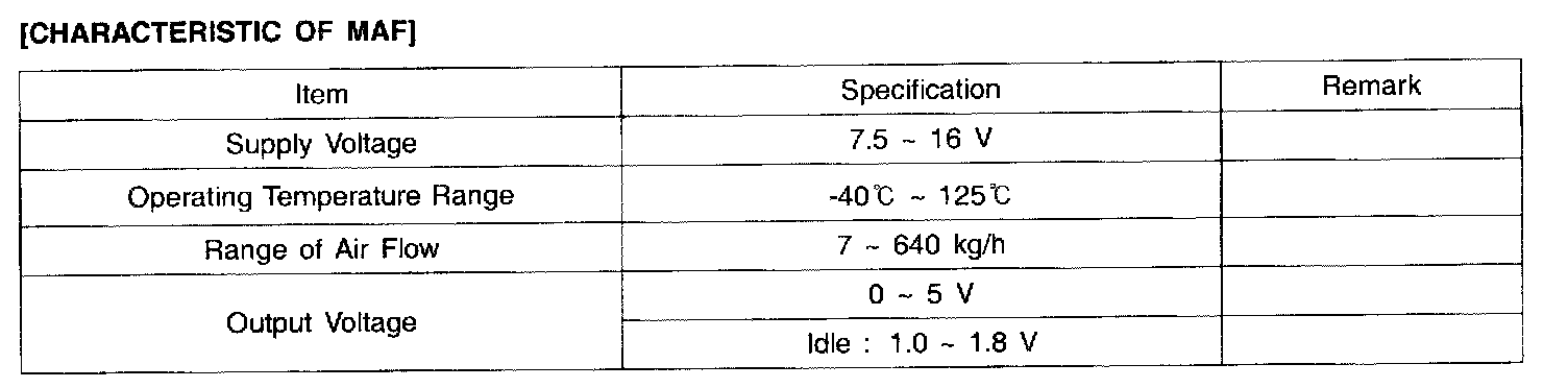 3. If the engine can idle even if the MAF sensor output voltage is out of specification, check for the following conditions;