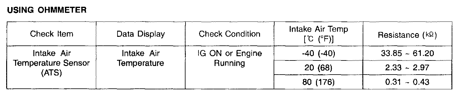 The intake air temperature sensor (ATS), located in the intake air hose, is a resistor-based sensor for detecting the intake air temperature. The intake air temperature information from the sensor helps the ECU provide the necessary fuel injection.