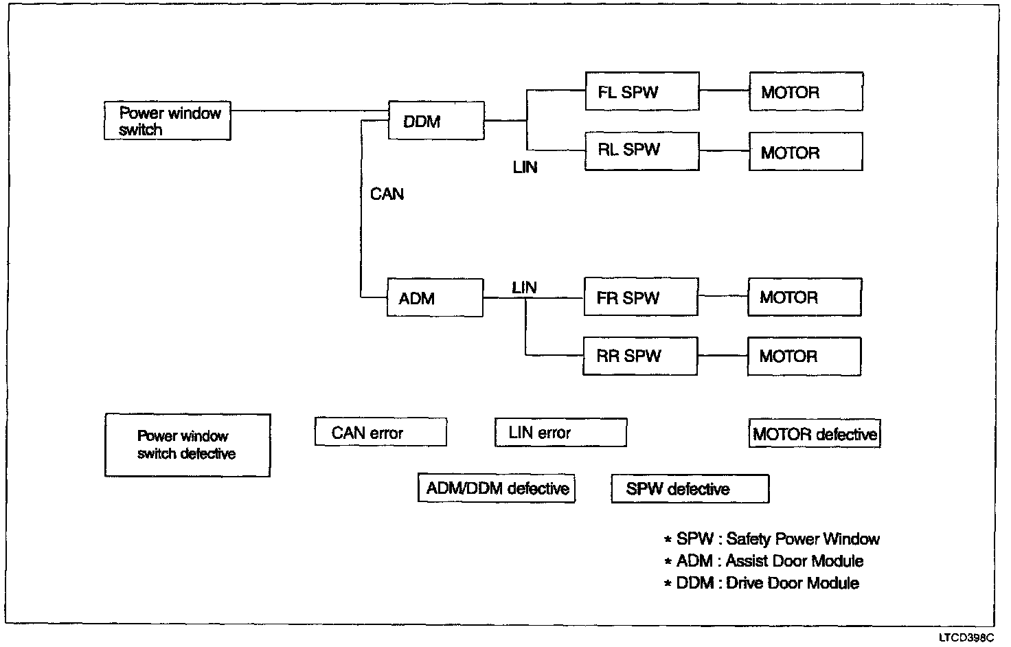 when the power window switch cannot raise the power window.