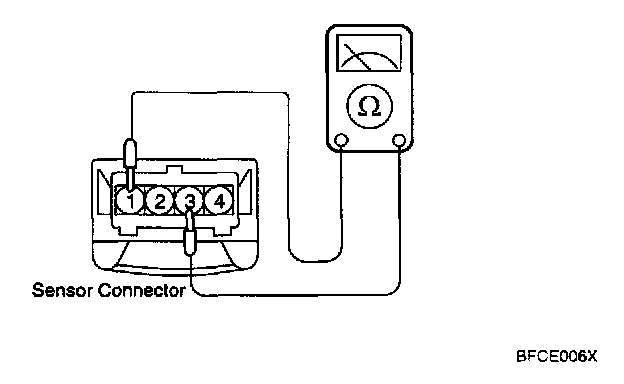2. Measure resistance between terminal 3 (GND) and 1 (Sensor supply).