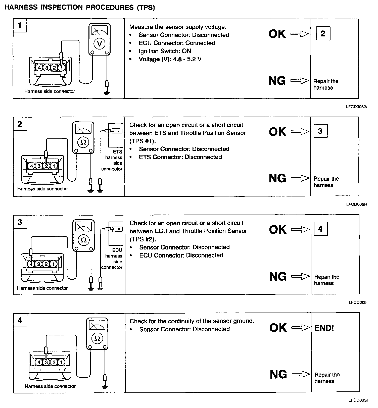 5. Replace the TPS if the sensor signal is out of range and is not directly proportional to throttle angle.