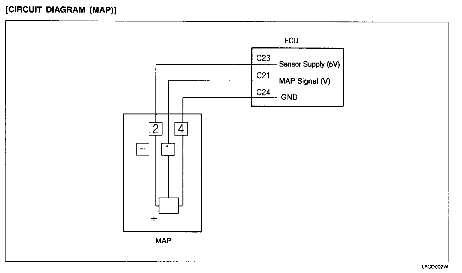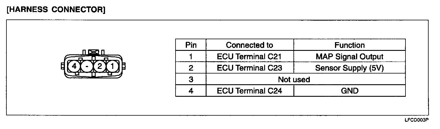 MANIFOLD ABSOLUTE PRESSURE (MAP) SENSORThe Manifold Absolute Pressure (MAP) Sensor converts intake manifold pressure into a voltage signal. ECU uses this signal to determine the condition of the Exhaust Gas Recirculation (EGR).