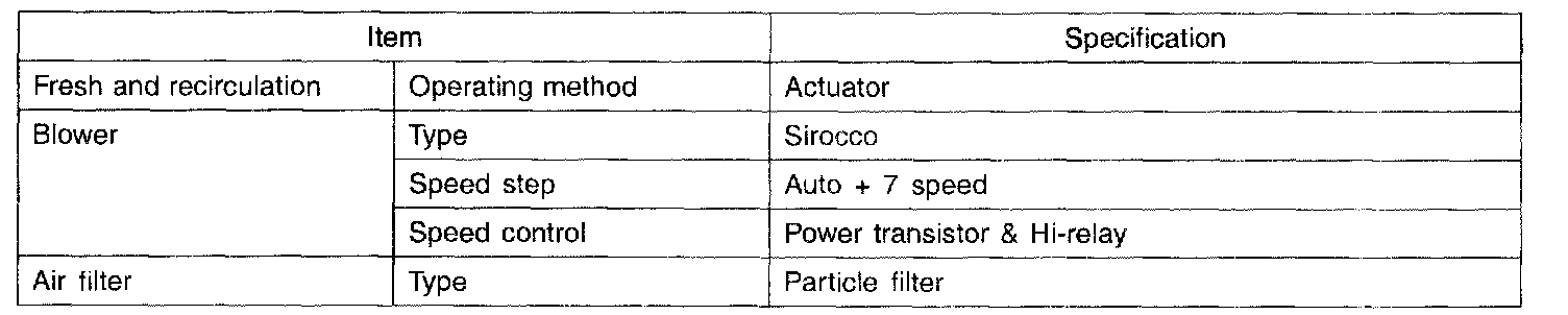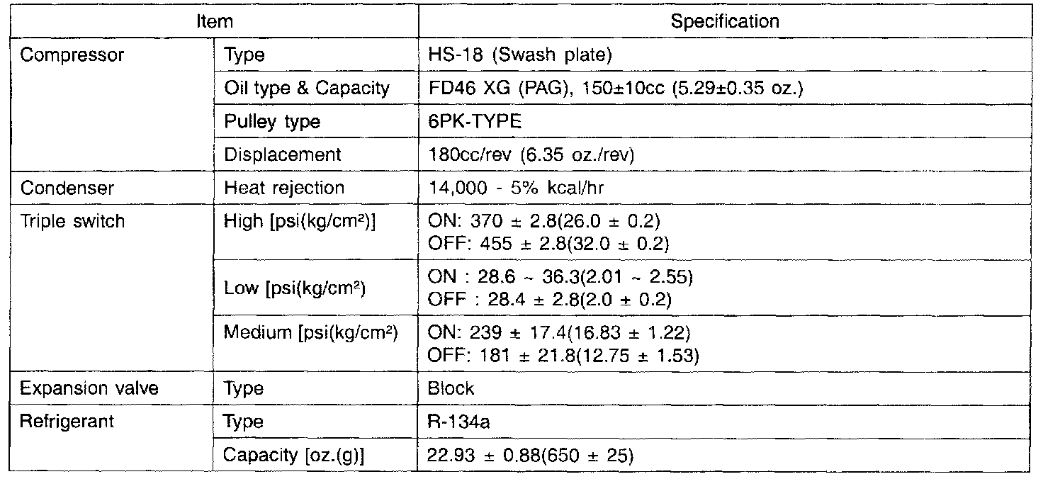 General Specification - Air Conditioner: