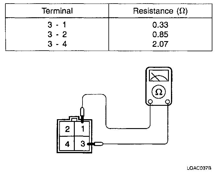 Check for continuity and resistance between terminals.