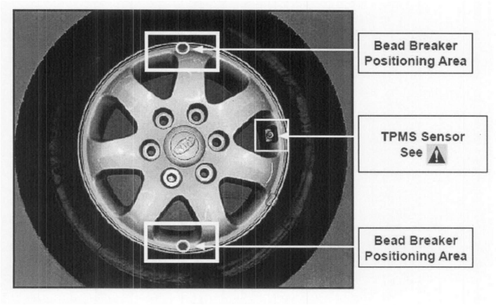Never allow the bead breaker assembly to contact the TPMS sensor. Sensors damaged due to improper mount/dismount procedures CANNOT be replaced under warranty.