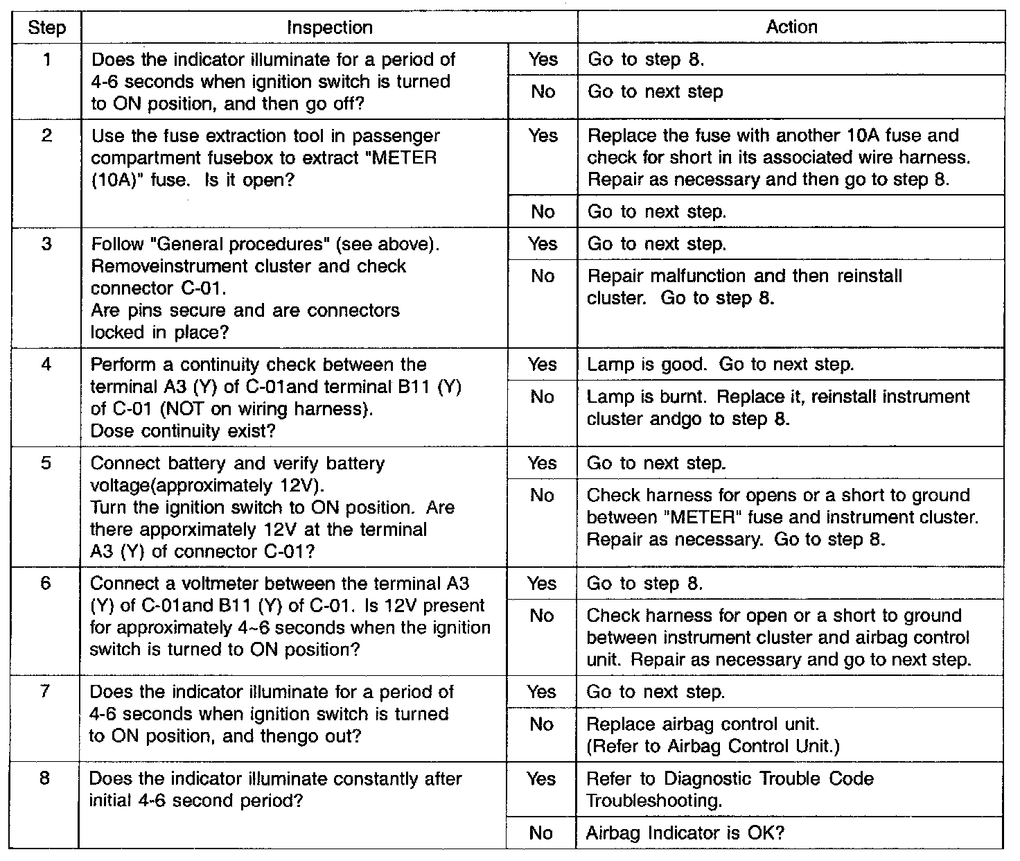 6. Verify that airbag indicator illuminates for 4 - 6 seconds and then goes off.