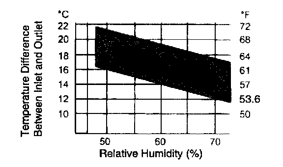 10. Check that the intersection of the relative humidity and temperature difference falls within the block below. If the intersection is within the block, cooling performance is satisfactory.