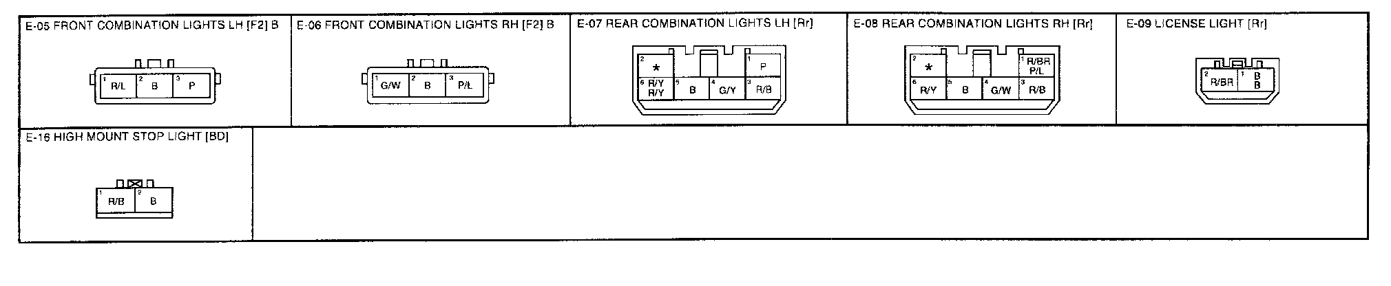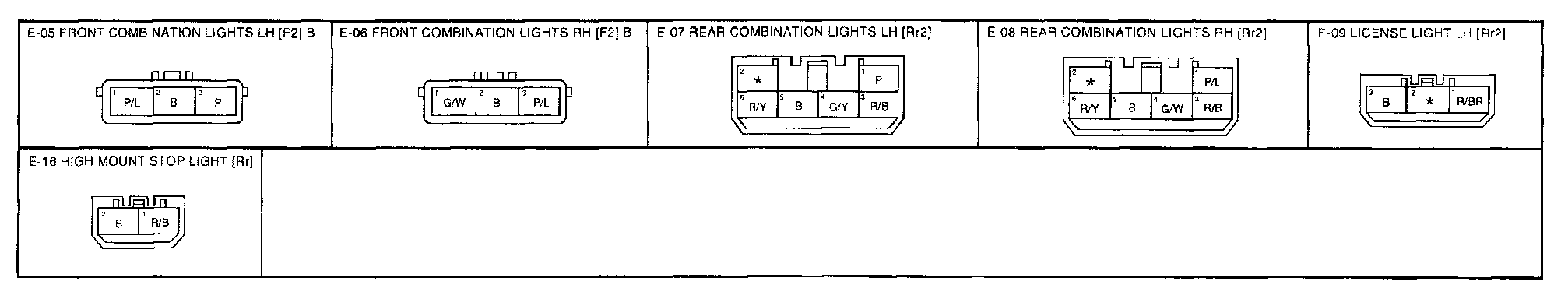 E-2 - Back-up Lights, License Lights, Tail Lights, Stop Lights, Position Lights, High Mount Stop Lights Connectors: