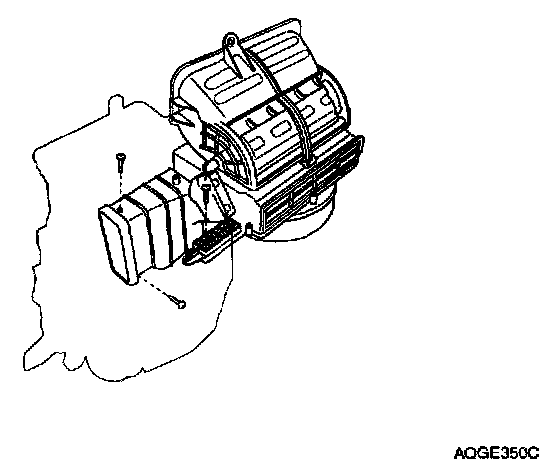 7. Disconnect the connectors from the temp. actuator, the mode actuator and the thermistor, then remove the mounting nuts.