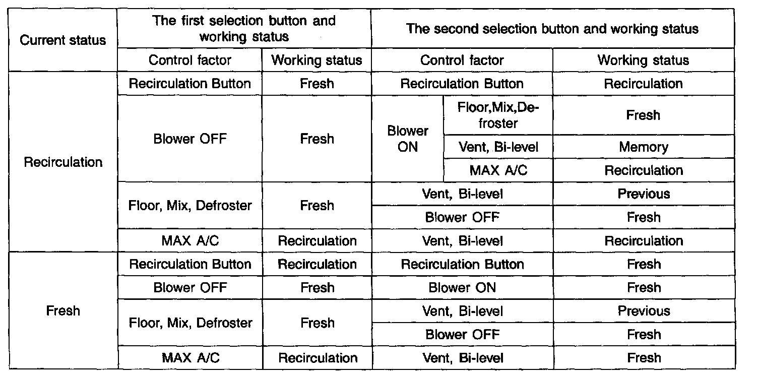 1. With battery applied, It controls with A/C OFF and the fresh mode.