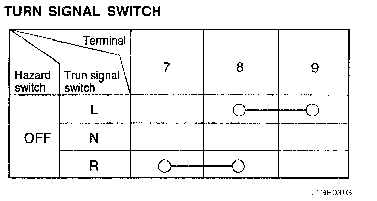 With the multi function switch in each position make sure that continuity exists between the terminals below. If continuity is not as specified, replace the multi-function switch.