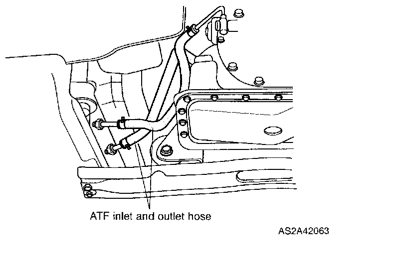 2. Disconnect ATF inlet and outlet hose from radiator.