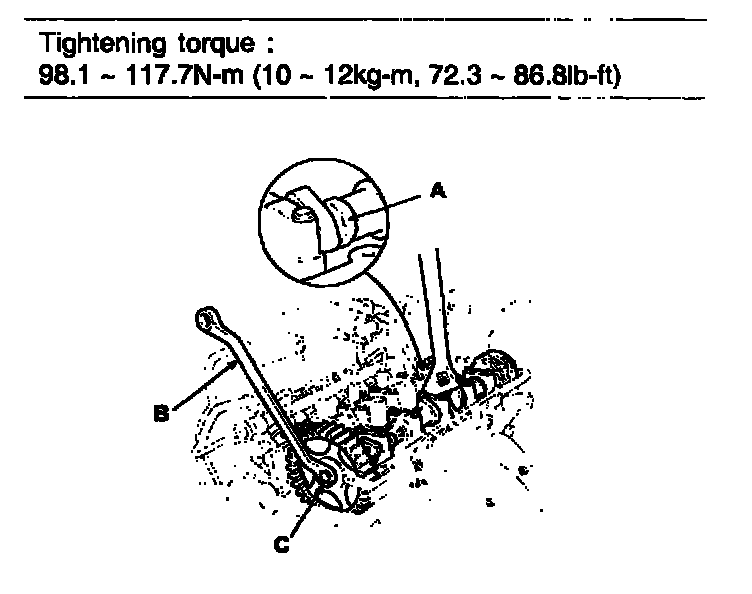 Nut(c) and bolt(B): 49.0 - 63.7 Nm (5.0 - 6.5 kg-m, 36.2 - 47.0 ft. lbs.)