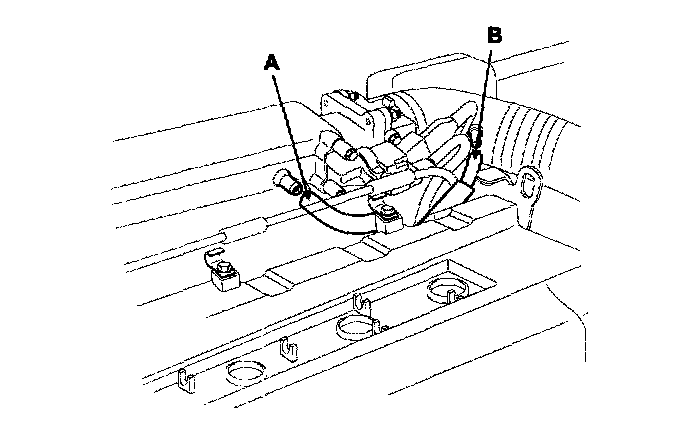 2) Remove the Positive Crankcase Ventilation (PCV) hose (A) and the breather hose(B) from the cylinder head cover.