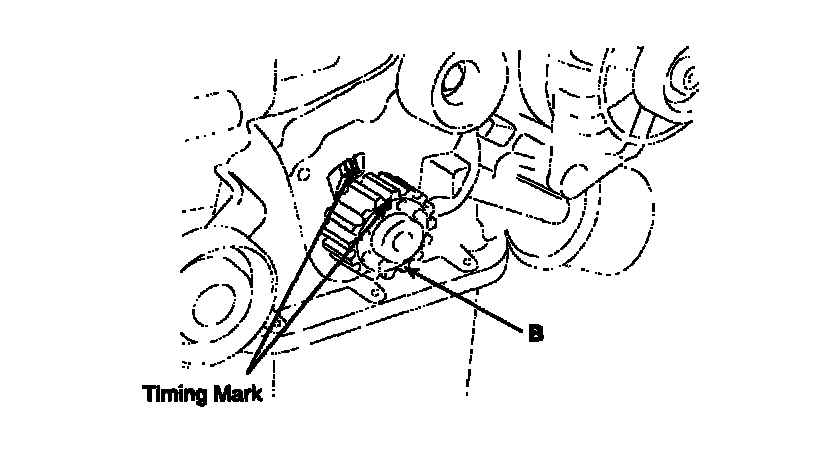 4. Align the timing marks of the camshaft sprocket (A) and crankshaft sprocket(B) with the No. 1 piston placed at top dead center and its compression stroke.