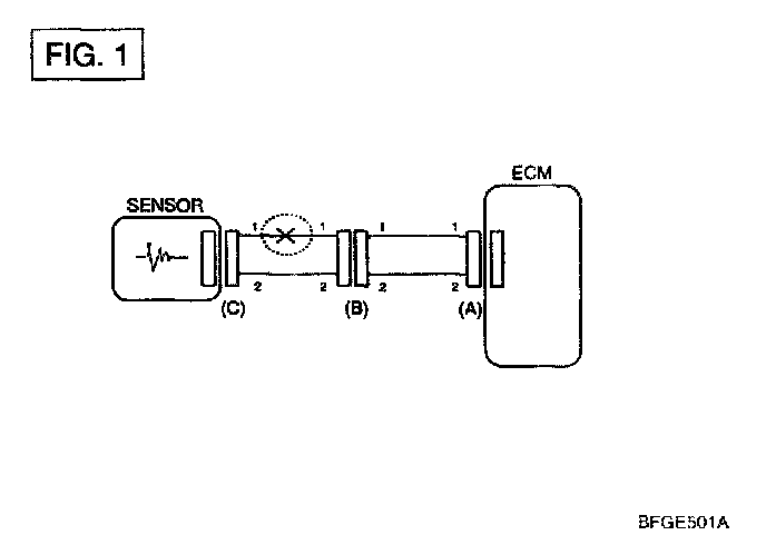 If an open circuit occurs (as seen in [FIG.1]), it can be found by performing Step 2 (Continuity Check Method) or Step 3 (Voltage Check Method).