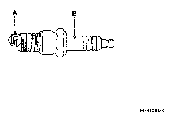 3. Inspect the electrodes (A) and ceramic insulator (B).