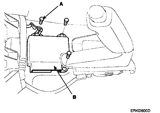 6. Remove the SRSCM mounting bolts (A) from the SRSCM and pull out the SRSCM from the bracket.