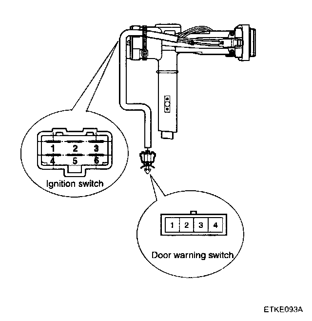 INSPECTION1. Disconnect the ignition switch connector and door warning switch connector from under the steering column.