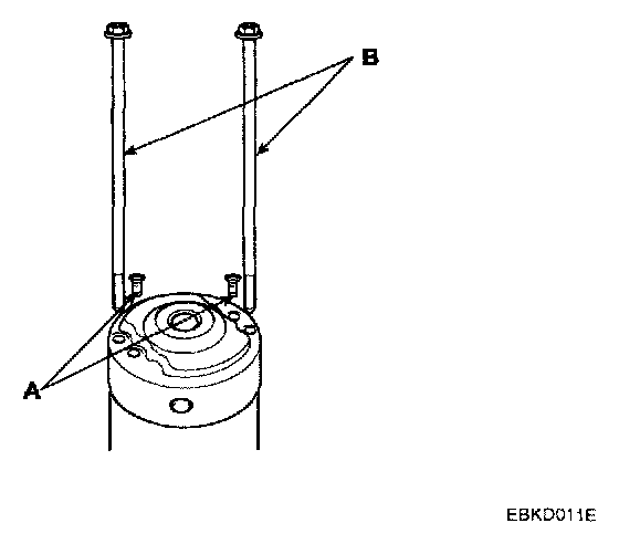3. Loosen the brush holder mounting screw (A) and through bolts (B).