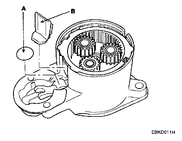 8. Disconnect the planetary shaft assembly (A) and lever (B).