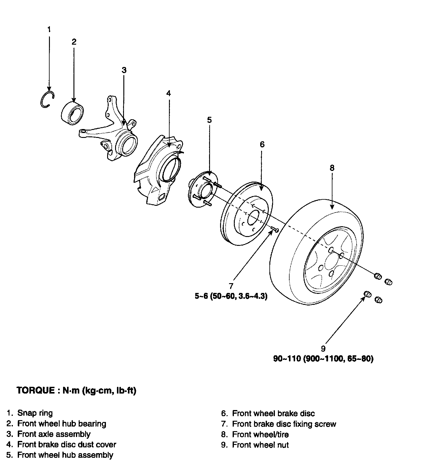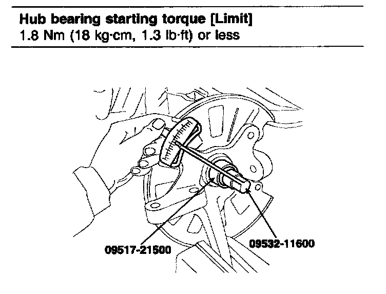 Hub bearing starting torque [Limit]: 1.8 Nm (18 kg-cm, 1.3 ft. lbs.) or less