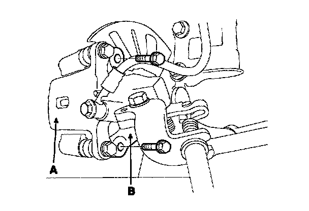 4. Remove the wheel speed sensor(A) from the knuckle(B).