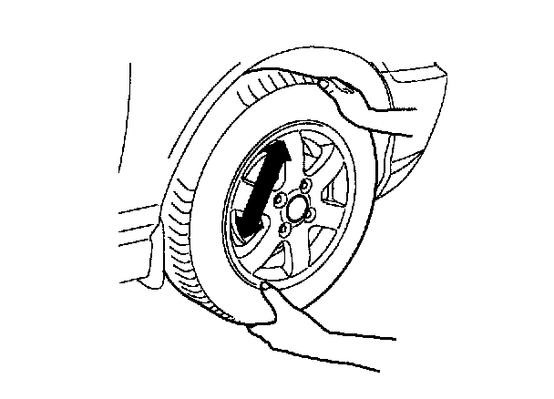 2. Grip each front tire at the top and bottom and move the wheel inward and outward while lifting the weight of the tire off the front wheel bearings.