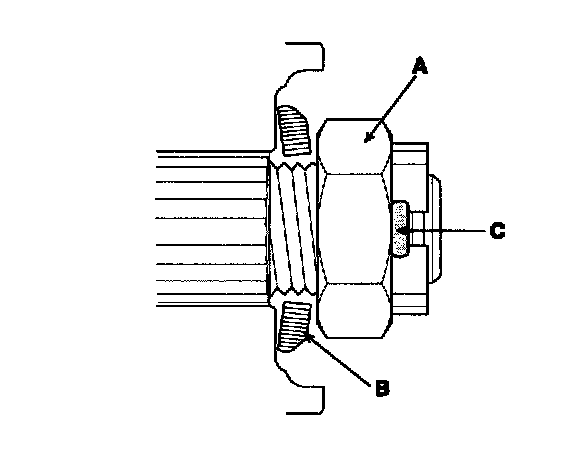 b. Remove the lock nut (D).