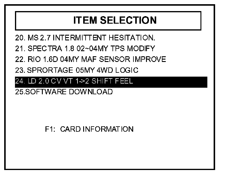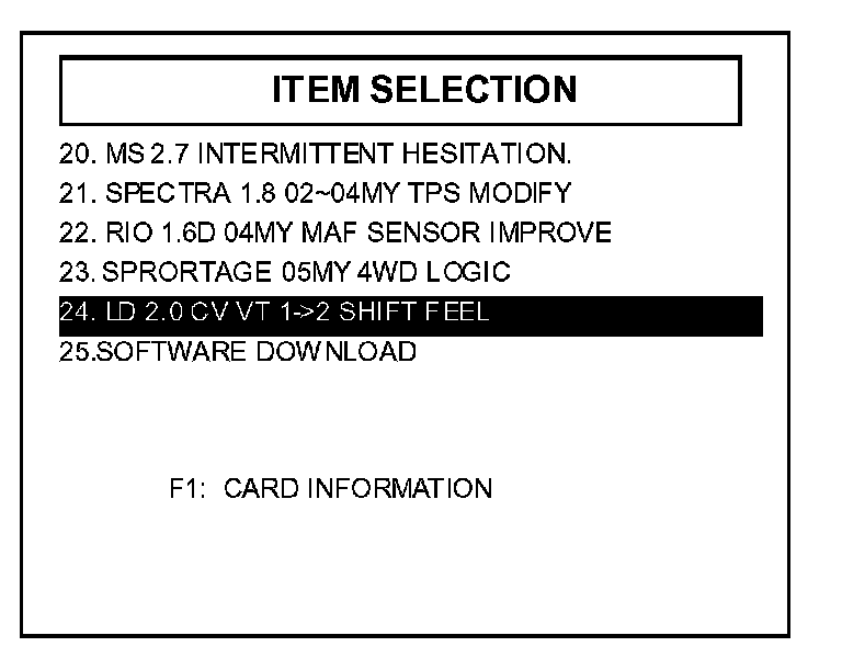 6. Select option "24. LD 2.0 CVVT 1->2 SHIFT FEEL" and press enter.