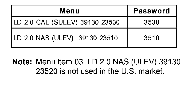 4. Enter the correct password according to the vehicle ECU part number as shown in the table and press "ENTER".