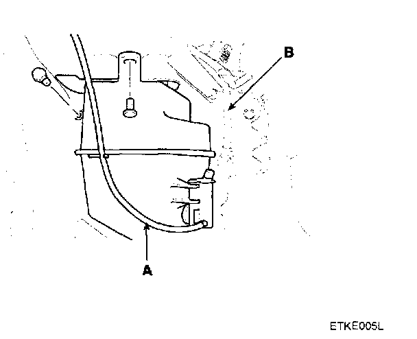 3. Remove the washer hose (A) and the washer motor connector (B).