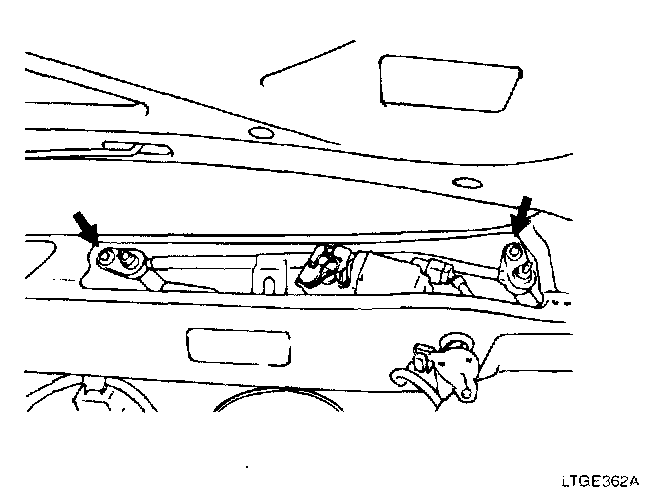 3. Remove the windshield wiper motor and linkage assembly after removing 2 bolts (A).