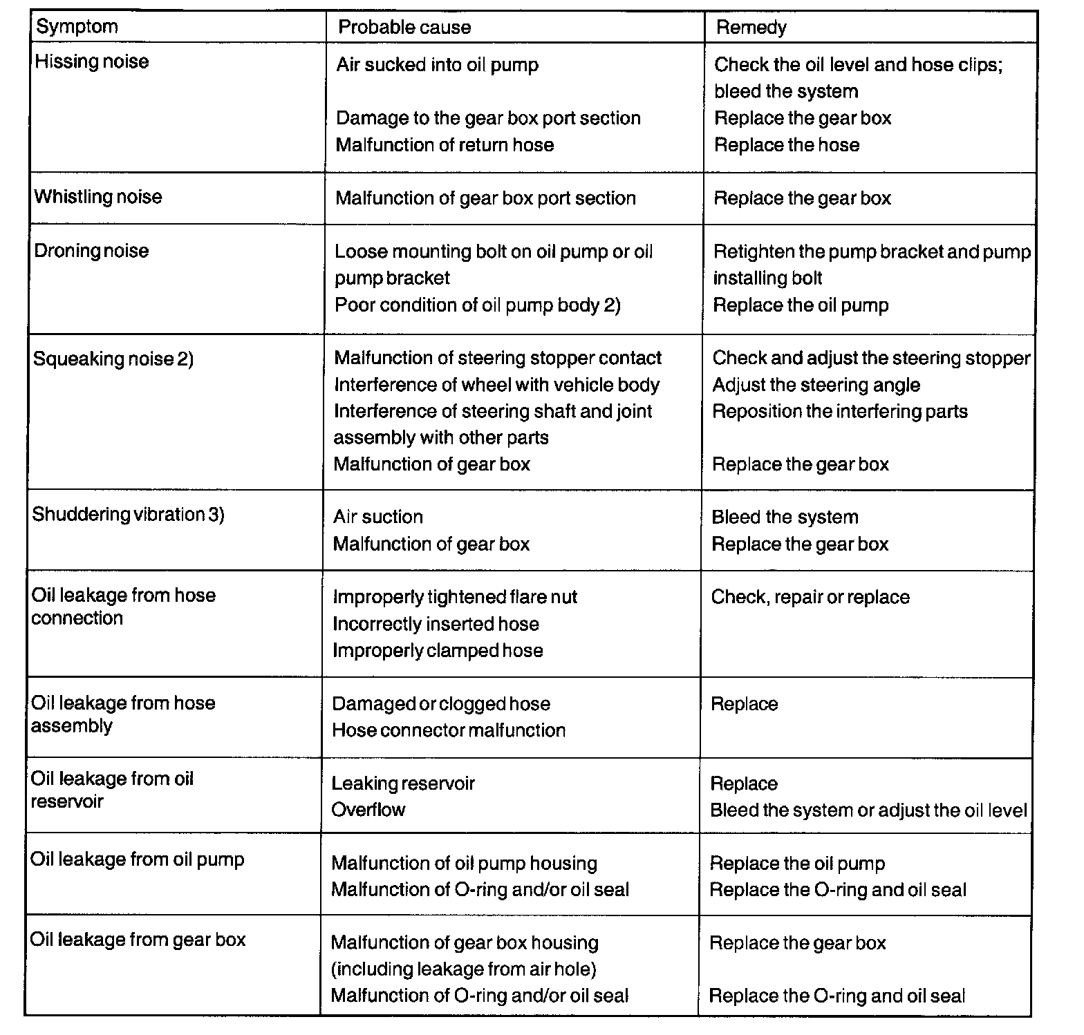 2) A slight "beat noise" is produced by the oil pump; this is note malfunction. (This noise occurs particularly when a stationary steering effort is made.)