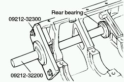 NOTE: Apply engine oil to the rear bearing out circumference and bearing hole in cylinder block. The left rear bearing has no holes.