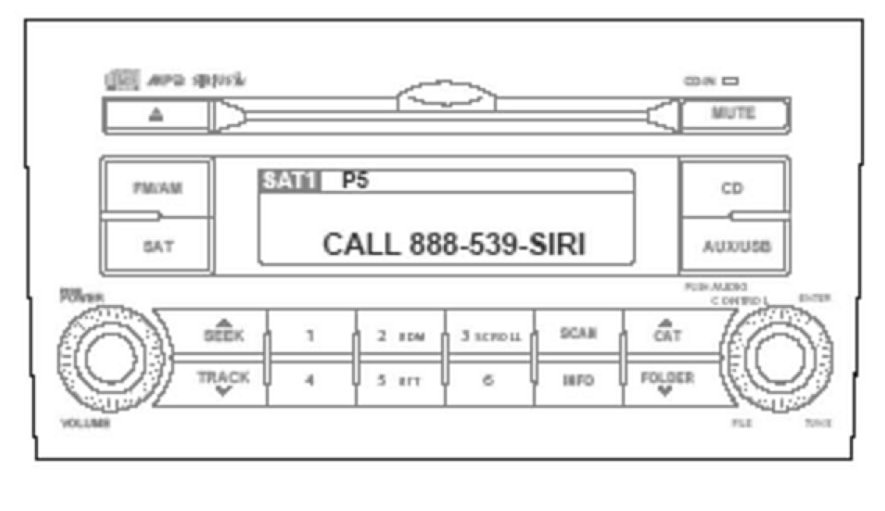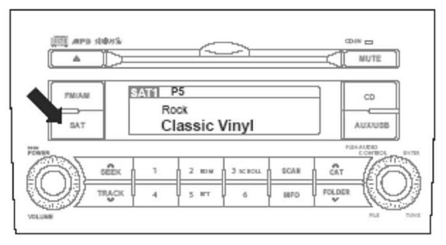 1. SAT/SIRIUS button: Press this button with the audio unit ON to access Sirius Satellite Radio. Pressing this button repeatedly will cycle through SAT1/SAT2/SAT3 bands.