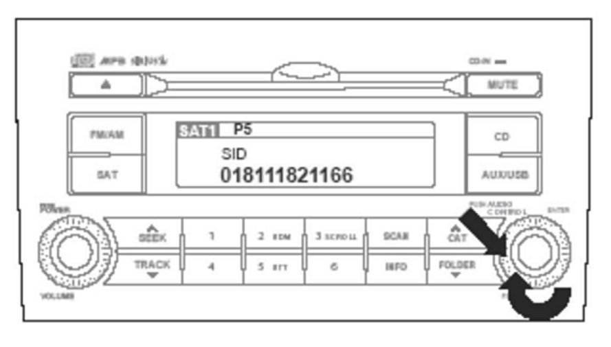 1. While in Sirius (SAT) mode, rotate the TUNE/ENTER knob to channel 0, then press the TUNE/ENTER knob. The ESN will display. No audio will be heard with channel 0 selected.