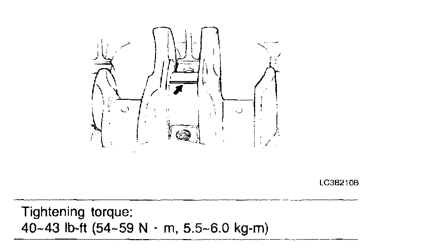 7. Install main bearing caps along with lower main bearings according to cap number and <- mark.