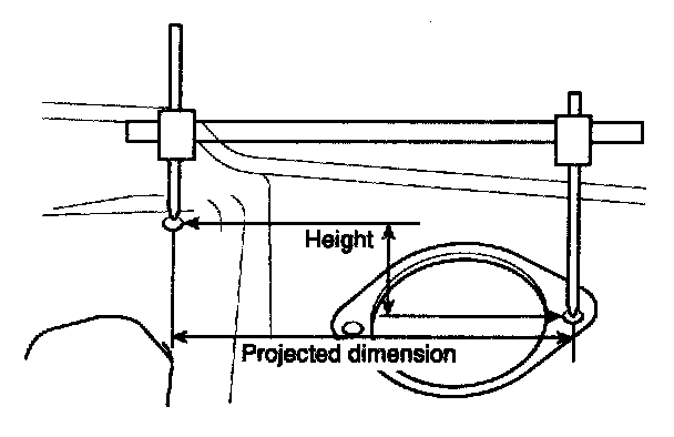 1. These are the dimensions measured when the measurement points are projected from the vehicle's surface, and are the reference dimensions used for body alterations.