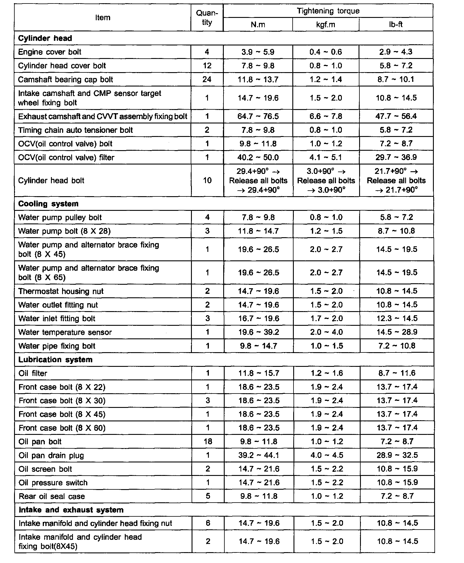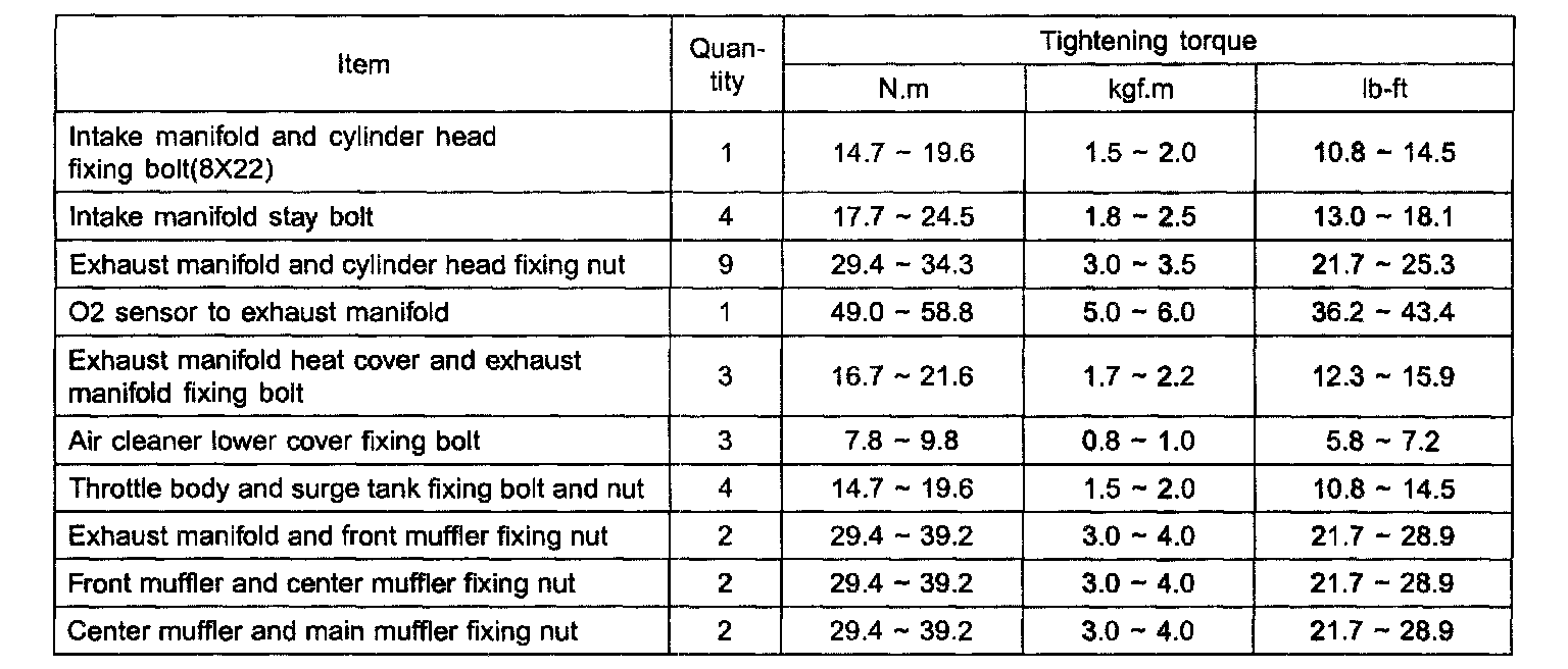 Torque Specifications