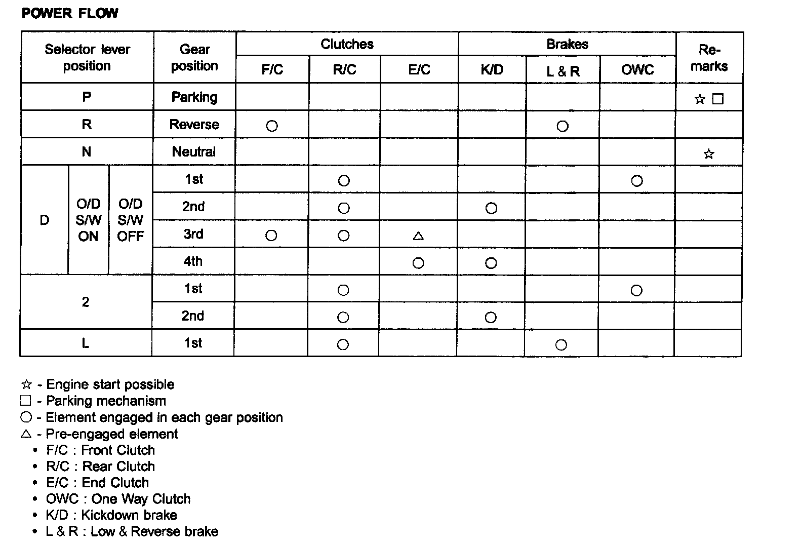 Operating elements: Rear Clutch, Low & Reverse Brake: