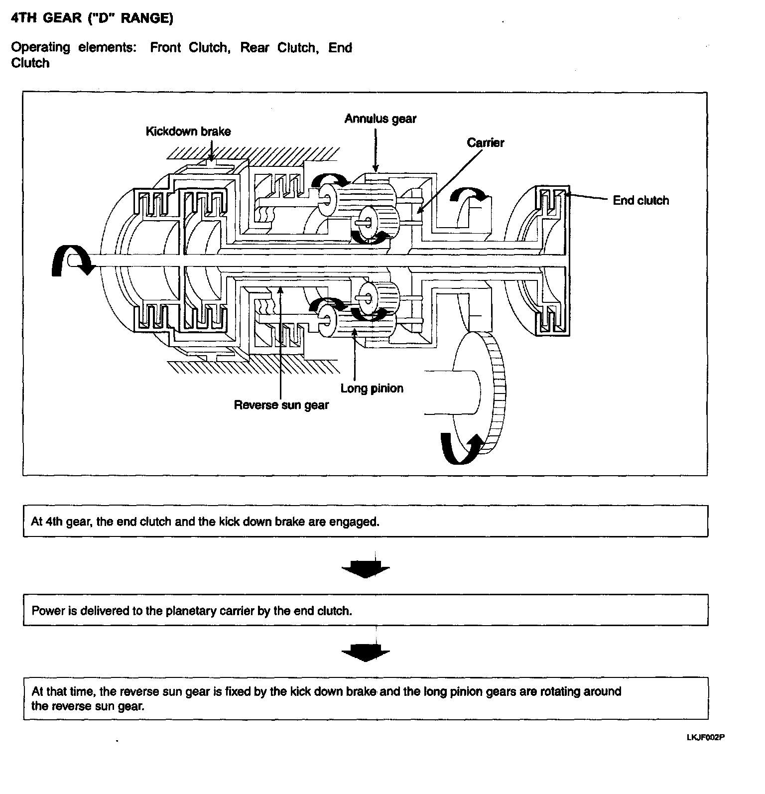 End clutch is engaged at 4th gear (Actually, end clutch is being engaged from 3rd gear. This is only for smooth shifting to 4th gear). When it operates, planetary carrier rotates.