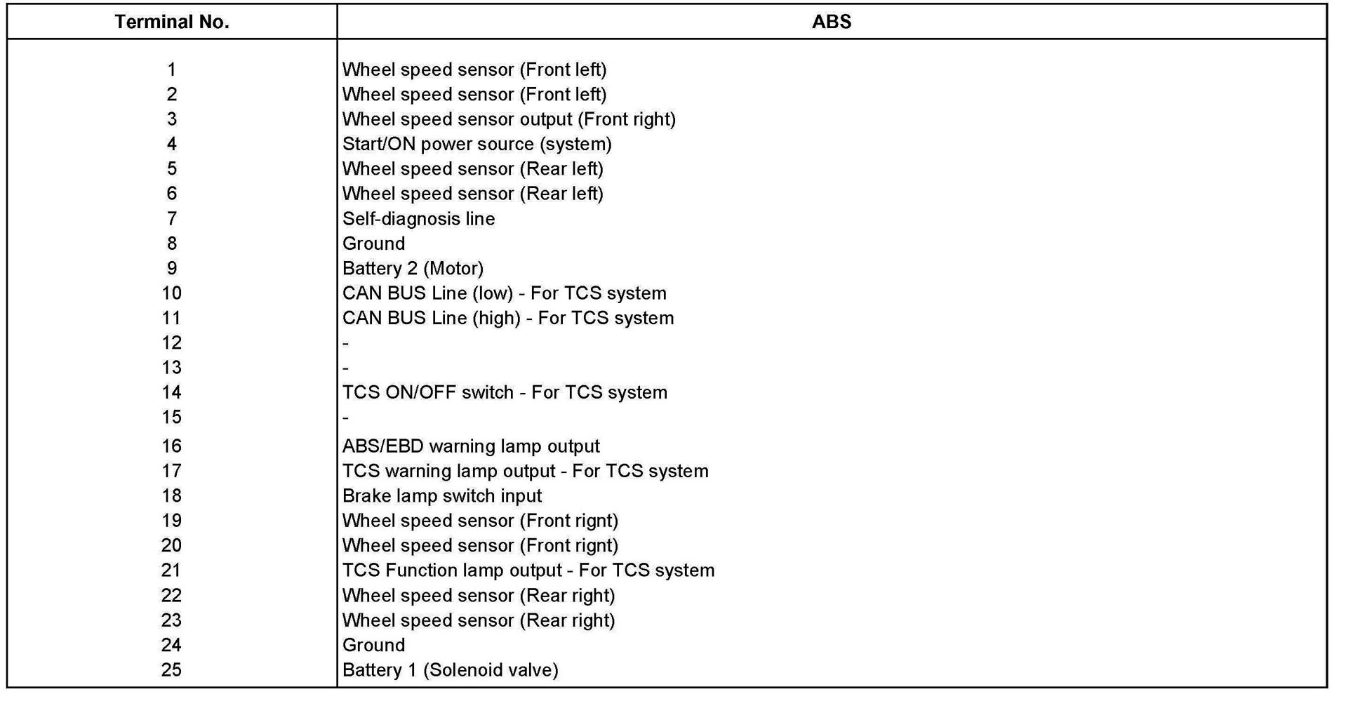 HECU CONNECTOR INPUT/OUTPUT: