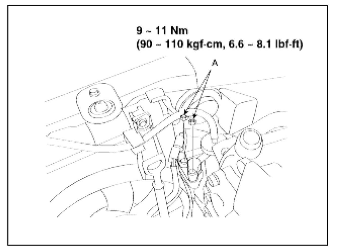 3. Remove the nuts (A), then disconnect the discharge line and condenser line from the condenser.