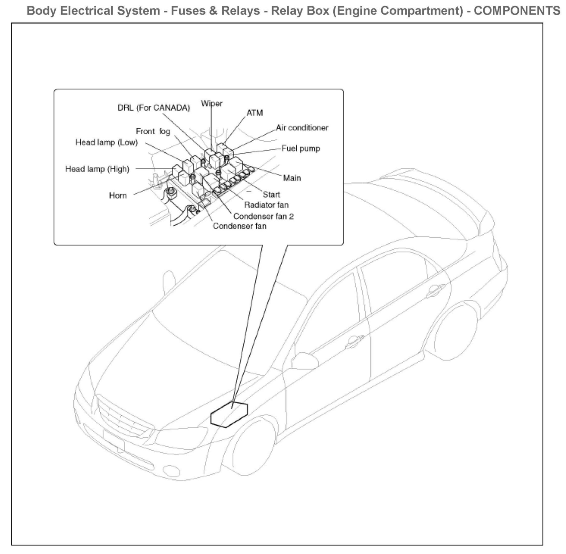 Relay Box (Engine Compartment) Components: