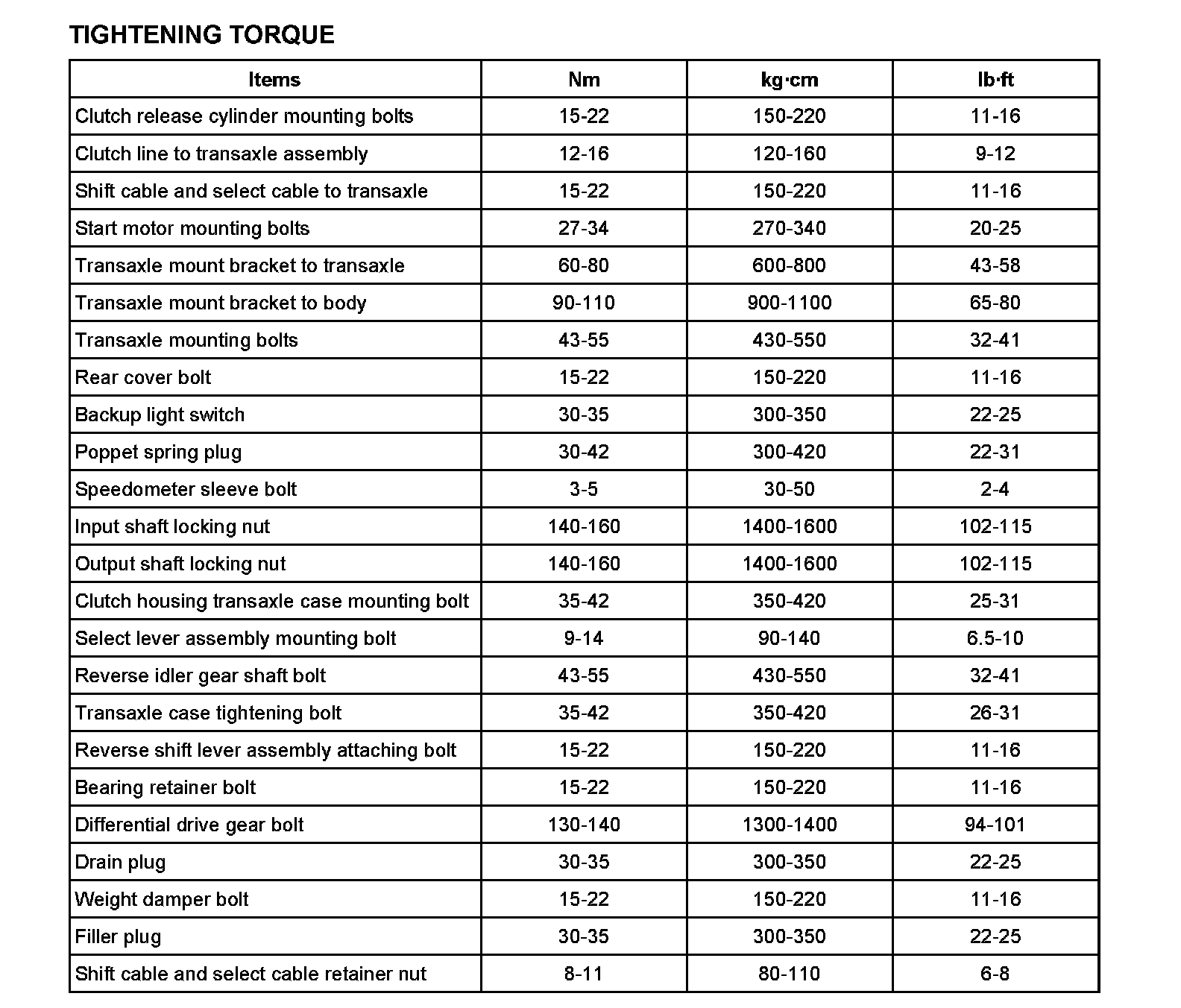TIGHTENING TORQUE